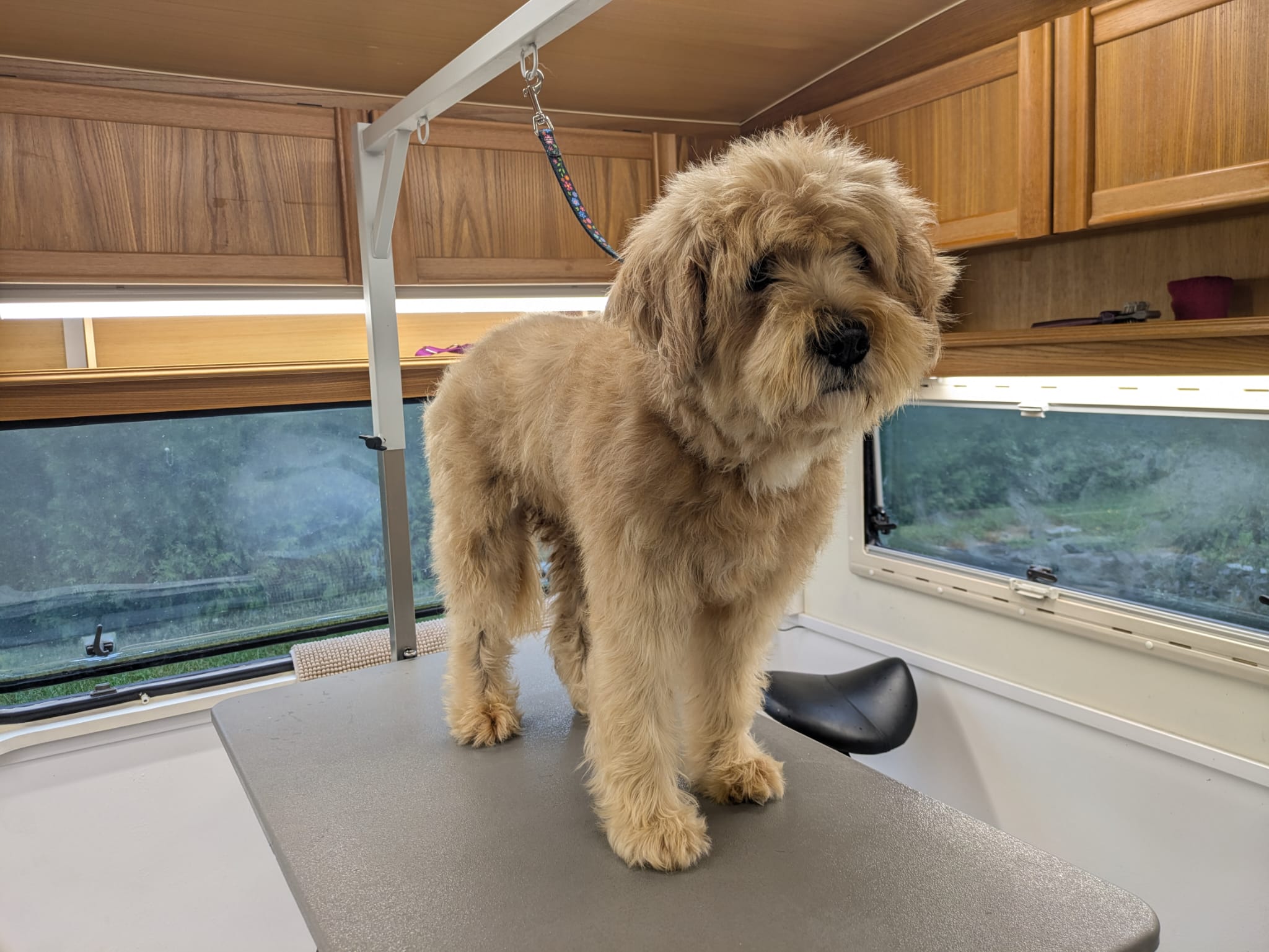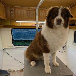 Batschi erhielt in Ronnys Pflegehütte eine komplette Pflege inklusive Schur. Nach dem Baden, Föhnen und gründlichen Bürsten wurde das Fell gleichmäßig geschoren – für ein gepflegtes, sauberes Erscheinungsbild und mehr Wohlbefinden im Alltag.